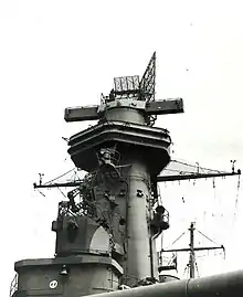 Las torres principales también estaban fuertemente blindadas, 410 mm en su cara frontal, 230 mm en los laterales, 300 mm en su parte trasera y 180 mm en el techo. Las planchas de 410 mm que protegían la cara frontal de las baterías principales eran del máximo grosor que podían ser fabricadas en el año en que se diseñó el buque. Sin embargo en 1939 ya era posbile fabricar planchas aún más gruesas (de hasta 457 mm). Los pozos que contenían las torres prinfipales tenían un blindaje de 370 mm en su parte frontal, de 410 mm en los laterales y de 290 mm en la trasera. Las baterías de 127 mm estaban encalustradas en torres con un blindaje de 50 mm.[35]