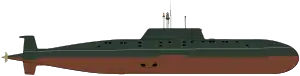 Las modificaciones consistieron alargar casco unos tres metros. la inclusión de los misiles de crucero RK-55 Granat (OTAN: SS-N-21 Sampson). La vela más larga 5 m y cambia de forma con un curioso borde plano. Los mástiles se agrupan en el lado de estribor para dejar sitio a dos cápsulas de escape en la vela. El lado de estribor también tiene un sensor de ambiente de 10 puntas instalado en ángulo recto con la parte delantera de la vela. Además, un bulbo más grande en su aleta de timón posterior. El bulbo aloja un sonar remolcado Skat 3 de dípolos pasivos de muy baja frecuencia.