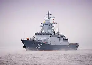 Según la clasificación oficial de la OTAN - fragatas Clase Steregushchiy , según expertos independientes del Instituto Internacional de Estudios Estratégicos (Londres), se clasifican como fragatas. Estos barcos deberían convertirse en la base de la Armada rusa en la zona cercana al mar.