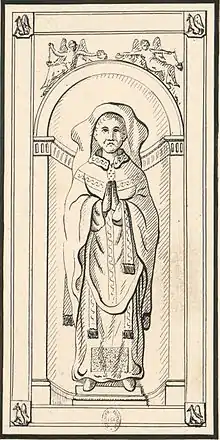 ![]() Piedra, con dibujo de retrato, en la tumba de Claude Cotereau. | ||