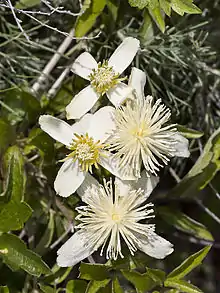 Clematis lasiantha es una planta trepadora de la familia Ranunculaceae.