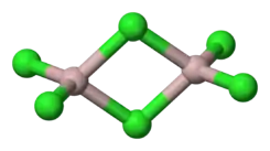 El cloruro de aluminio (AlCl3) es un compuesto de aluminio y cloro. El sólido tiene un bajo punto de fusión y de ebullición, y está formado por moléculas que presentan enlace covalente a pesar de que está formado por un metal y un no metal. Su sublimación se produce a los 178° C. El AlCl3 fundido conduce mal la electricidad,[2] a diferencia de muchos haluros iónicos como el cloruro de sodio. Existe en estado sólido como una séxtuple estructura coordinada de rejillas en capas.[3]