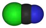 Aunque la fórmula se escribe CNCl, el cloruro de cianógeno es una molécula con la conectividad ClCN. El Carbono y el cloro están unidos por un enlace simple, y el carbono y el nitrógeno, por un enlace triple. Es un compuesto lineal, al igual que los haluros de cianógeno (NCF, NCBr, CNI). El cloruro de cianógeno es producido por la oxidación del cianuro de sodio con cloro. Esta reacción tiene lugar a través del intermedio del cianógeno ((CN)2).[2]