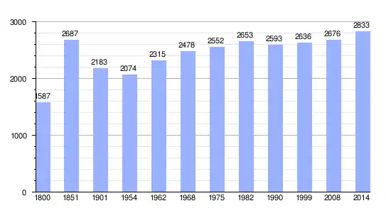 Los datos demográficos contemplados en este gráfico de la comuna de Cloyes-sur-le-Loir[4] se han cogido de 1800 a 1999 de la página francesa EHESS/Cassini, y los demás datos de la página del INSEE.[5]