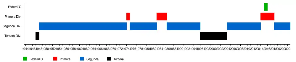 La temporada en la que se afilió, salió campeón de la división recién creada. Participó en la Segunda División, siendo protagonista de esta en algunas ocasiones. En 1973 llegó a la gran final por el ascenso, donde frente a Las Flores en cancha de Talleres lo consiguió. Venció por 3 a 2 al Taladro y ascendió a la Primera División por primera vez en su historia. Tras una mala campaña vuelve a la Segunda División para jugar el campeonato de 1975. Tendría su revancha en 1982 cuando vuelve a ascender a Primera, coronándose campeón del un torneo por primera vez en su historia. Nuevamente, su estadía en la máxima categoría no es buena, en especial la temporada 1985, cuando desciende a la Segunda División. Esta fue una época de altibajos para el Albo, se intensifica en 1995 cuando desciende a la Primera C (tercera división del fútbol cordobés en ese entonces). En la temporada 2003 se coronó campeón y ascendió a la Primera B, en la que se ha mantenido hasta 2013 donde consiguió por tercera vez el ascenso a Primera A. La temporada 2014 fue bastante buena, con un cuarto lugar, logró clasificarse para el Federal C 2015.[2]
