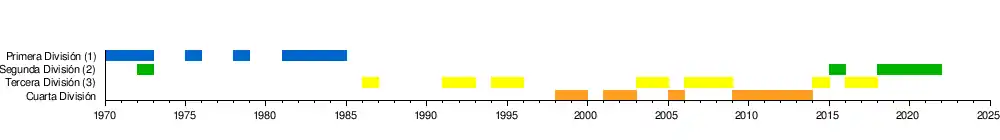 El club llegó a disputar lo que fue la Primera División de Argentina de entre los años 1967 y 1985, es decir, el antiguo Campeonato Nacional y lo hizo en nueve oportunidades. Para ello, previamente debió jugar y ganar su liga regional para clasificar luego al Torneo Regional que otorgaba una plaza a la competición mayor de esos años.[41]
