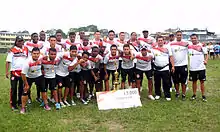 - Uniforme titular: Camiseta blanca con rayas rojas, pantalón blanco con vivos rojos, y medias blancas con dos líneas horizontales rojas.