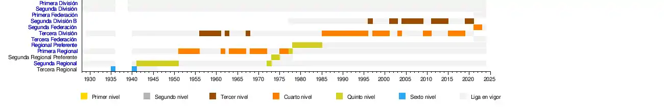 2019/20 | 2.ªB | 18.º | 28 | 9 | 5 | 14 | 26 | 37 | 32 | 1.ª ronda | Oliverio Álvarez "Oli" | Luis Gallego González | Álex Arias (10) |