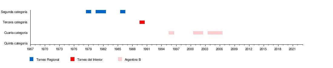 - No participó de las temporadas de 1990/91 y 1994/95 y su cupo lo tomó Independiente y Ferrocarril YCF respectivamente.