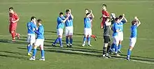 - Uniforme titular: Camiseta y pantalón azules, y medias blancas.