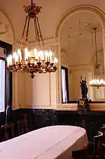 Las mesas de la sala de billar (más pequeñas que las de pool) fueron traídas directamente desde Inglaterra. En este salón la iluminación corre por cuenta de las enormes lámparas de bronce.