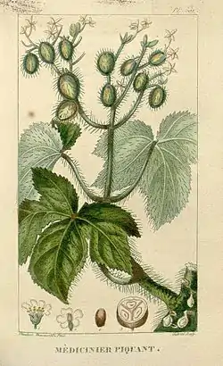 Cnidoscolus: nombre genérico que deriva del griego antiguo κνίδη (knide), que significa "ortiga", y σκολος (skolos), que significa "espina" o "cosquilleo".[7]