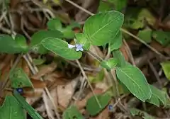 Son hierbas perennes o quizá anuales, inermes, terrestres, frecuentemente postradas o reptantes, las flores bisexuales. Hojas opuestas, isofilas, sin domacios, con frecuencia moradas en el envés; nervadura menor no lineolada; estípulas interpeciolares, triangulares a subuladas o a veces reducidas a 1 línea interpeciolar truncada o 2-8-setosa, erguidas, persistentes, aparentemente valvares. Inflorescencias terminales o seudoaxilares, capitadas o glomeriformes, con (1-)3-20 flores, bracteadas. Flores sésiles, distilas, aparentemente protandras; limbo calicino 4-lobado hasta la base, sin calicofilos; corola infundibuliforme, azul, morada o blanca generalmente teñida con estos colores, en el interior variadamente pelosa pero generalmente glabra en la garganta, los lobos 4, valvares, sin apéndices; estambres 4, incluidos o exertos, las anteras dorsifijas cerca del 1/2 o de la base; estigmas 2, lineares, exertos; ovario 2-locular, los óvulos numerosos, axilares. Frutos en bayas, subglobosas a elipsoidales, aerenquimatosas y generalmente huecas, azules con el color generalmente intenso; semillas numerosas, discoidales, verruculosas.[2]