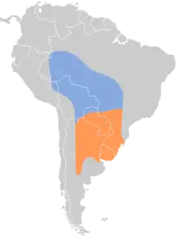 Se encuentra en los bosques, sabanas y arboledas de Argentina, Bolivia, Brasil, Colombia, Paraguay, Perú y Uruguay.[1]