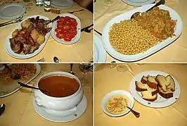 Ingredientes | Repollo, garbanzos, varios tipos de carnes, sopa | |