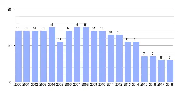Gráfica de evolución demográfica de Codesido entre 2000 y 2018