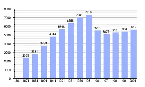 Gráfica de evolución demográfica de Codevigo entre 1861 y 2001 |