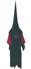 Antifaz y túnica negros Esclavina y cíngulo rojos ![]() | |