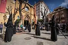 Túnica | Rojo corinto en la procesión del Sábado de Pasión, y negro en la de Sábado Santo. | |