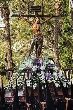• Santísimo Cristo de la Fe (Titular de la Cofradía). Antonio Dorrego, 1954, único crucificado sin policromar que desfila en la Semana Santa de Murcia