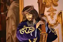 - Nuestro Padre Jesús de la Merced. Atribuido a Nicolás Salzillo, 1713. Imagen perteneciente a la Iglesia conventual de La Merced, cada Sábado de Pasión se traslada a la Iglesia de San Juan de Dios -sede de la Cofradía de la Salud- para participar en la procesión del Martes Santo.