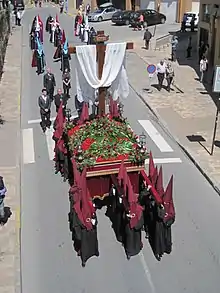 - Viernes Santo: Procesión del Bendito Cristo de los Afligidos. La cofradía sale con los pasos del Bendito Cristo de los Afligidos, la Cruz del Sudario y las cruces pardas.