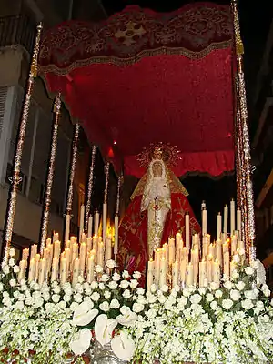 - María Santísima del Perdón (1952) de Quintín de Torre en trono de plata de Orrico.