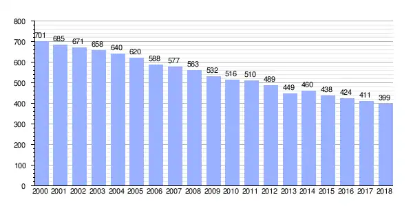 Gráfica de evolución demográfica de Coiro[2] entre 2000 y 2018 |