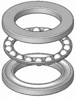 - Los rodamientos de empuje de rodadura esférica utilizan rodillos con forma de barril asimétrico que ruedan sobre una pista de rodadura con forma interior esférica. Pueden adaptarse a cargas axiales y radiales combinadas y también a la desalineación de los ejes. A menudo se utilizan junto con rodamientos de rodadura esférica, diseñados para soportar principalmente cargas radiales. Los rodamientos axiales de rodadura esférica proporcionan la densidad de carga nominal más alta de todos los rodamientos axiales.[1]