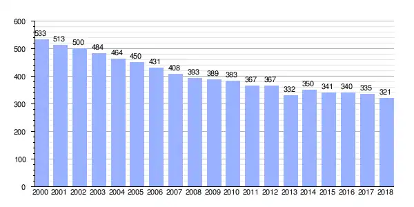 Gráfica de evolución demográfica de Colúns[2] entre 2000 y 2018 |