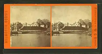 - Vista estereoscópica de Cole's Hill a finales de 1800 con el dosel de roca de Plymouth a la izquierda.