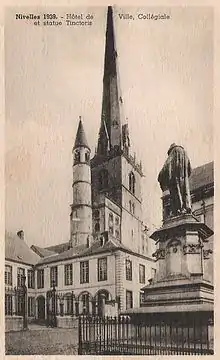 El campanario de la iglesia de Nivelles estaba, antes de la destrucción de la guerra, rematado con una flecha gótica. El campanario fue luego reemplazado por una torre octogonal de estilo románico tardío, tal como podría haber coronado un antecuerpo antes del siglo XII. La disputa entre los expertos sobre esta cuestión fue resuelta tras un referéndum de consulta entre la población.