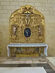- La capilla del Sagrario, situada en el lado del evangelio de la cabecera, contiene un triple retablo, el primero dedicado a la Virgen de la Victoria de 1584, con escultura de Manuel del Pino (1582) y cuadros atribuidos a Juan Bautista de Amiens, el segundo retablo fue realizado por Juan de Zamora en 1532, con cinco pinturas La Transfiguración, Jesús en el monte Tabor, La Santa Cena, El Juicio Final y La Resurrección. El último de los retablos que representa el Ecce Homo en el ático, es de autor desconocido, realizado a finales del siglo XVI. Destaca igualmente en esta capilla, un cuadro de la Oración en el huerto de finales del siglo XVII, de la escuela italiana.[4]