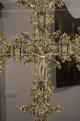 Dentro del ajuar litúrgico, destaca la Cruz Alzada Procesional de oro y plata con incrustaciones de gemas, realizada en Valladolid por el orfebre Pedro de Ribadeo, que data de entre 1500 y 1525, realizada en estilo gótico flamígero.[13] Igualmente destacables son otras piezas de orfebrería, libros de oraciones y vestimentas litúrgicas.