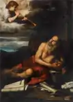 En el lado derecho de la entrada a la capilla figura un relieve en terracota de San Jerónimo penitente, una obra del siglo XVI, de autor desconocido y que constituye una de las piezas de estas características más importantes del Renacimiento andaluz.[8]