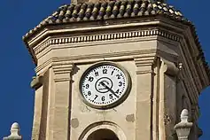 El campanario posee un reloj que todavía sigue en uso. En el interior del campanario todavía se conserva la maquinaria del reloj que es del siglo XIX, pero que está abandonado, ya que en la actualidad el mecanismo fue sustituido por un ordenador que lo gestiona, sin necesidad de tener que subir a darle cuerda todos los días.