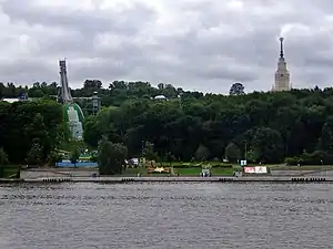 Cerca de la plataforma de observación se halla la estación del metro Luzhnikí.