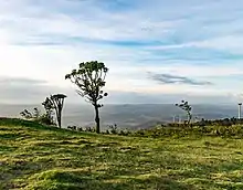 - Foto de Ngong Hills desde el Gran Valle del Rift, primer plano : mostrando vegetación, suburbios de Nairobi en el lado opuesto [PBase.com].