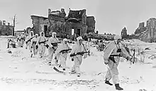 Columna de exploradores soviéticos en las colinas de Púlkovo en 1942.