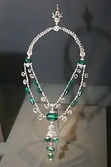 Las esmeraldas roscadas sobre el collar fueron minadas originalmente en Colombia. Los diamantes fueron minados en la India.[1] Mientras que las piedras preciosas de collar se cree que pudieron haber sido detalladas en la India en el siglo XVII,[2] la historia misma del comienzo del collar es desconocida. El joyero estadounidense Harry Winston, quien nombró al collar, demandó que fue poseído primero por la Realeza española.[3] Sin embargo, el primer dueño de la pieza que se recuerda fue Tukoji Rao III, Maharajá de Indore, a comienzos del siglo XX.[2] Después de su abdicación, el collar le fue otorgado a su hijo, Yashvantrao II, quién tomó el trono de su padre.