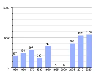 Gráfica de evolución demográfica de Colonia El Rosario entre 1950 y 2020 |