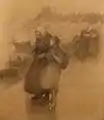 Entre los pintores conocidos como impresionistas irlandeses [91] se encontraban el peripatético William Gerard Barry y el efímero Frank O'Meara, cuya temprana visita a Étaples ya se ha mencionado. Otro miembro de este grupo fue el protegido de Barry, Harry Scully, [92] que se detuvo en la ciudad en 1896 pero también fue identificado con muchas otras colonias de arte. Sarah Cecilia Harrison, conocida por sus pinturas de niños y paisajes, estuvo allí en 1890 y su "En el camino a Étaples" se exhibió en la Royal Hibernian Academy al año siguiente. [93] En 1898 Edith Somerville estaba pintando en el pueblo, acompañada de su amiga Violet Martin. En este caso, sin embargo, aprovecharon su estancia para concebir juntas los relatos recogidos en Some Experiences of an Irish R.M. (1899). [94] En la década siguiente, Edward Millington Synge (1866-1913) pasó parte del invierno allí y ejecutó "The Thaw, Etaples" (1909), una acuarela de un camino embarrado bajo árboles con "cielo amarillo pálido, colinas moradas, techo rojo opaco"., calzada gris y púrpura, todo oscurecido por parches de nieve medio derretida'. [95] El año anterior se había casado con Freda Molony (1869-1924), cuyo nombre se menciona en este período entre los que pintan en el pueblo y como expositora de éxito en la Royal Academy. [7] Entre sus pinturas se encontraba una de "La bendición de la flota pesquera" en Étaples (1906). [96] Las pinturas de procesiones religiosas eran comparativamente raras en la colonia, pero en este caso, el enfoque impresionista de Molony se puede comparar con el tratamiento posimpresionista de Iso Rae de la procesión del "Domingo de Rogación" de unos siete años. después (Galería 6).