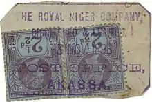 Sellos británicos usados en 1898 en Akassa por la Real Compañía del Níger