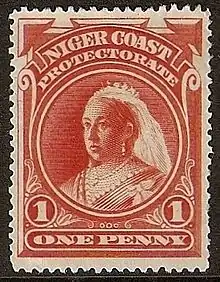 La reina Victoria en un sello del Protectorado de la Costa del Níger, 1894