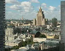 - Ministerio de Asuntos Exteriores y Universidad Estatal de Moscú, dos de los Stálinskiye Vysotki ("rascacielos de Stalin" o "las siete hermanas").