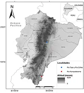 Únicamente se conocen tres localidades donde se puede encontrar esta planta: su localidad tipo en el Río Topo, en su afluente cercano, el Río Zuñac y en una tercera localidad en el Río Numpatakaima, registrada en el año 2012 durante una expedición en el alto Nangaritza.[3] Las dos primeras localidades (Rio Topo y Río Zuñac) están separadas por más de 400 km con la localidad del Rio Numpatakaima, que se encuentra dentro de la Reserva Biológica Cerro Plateado.
