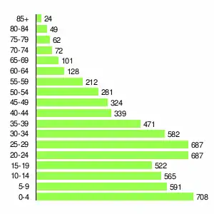 Fuente: «INDEC. Población de ciudades de Santa Cruz según edad». Archivado desde el original el 4 de marzo de 2016. Consultado el 11 de diciembre de 2013.