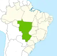 Pintados de color verde, los estados de Mato Grosso y Mato Grosso del Sur, que conforman el Comando Militar del Oeste.
