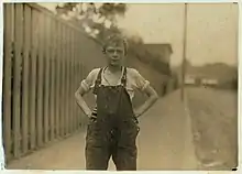 Lewis Hine fue un fotógrafo periodista influyente en los años previos a la Primera Guerra Mundial. Fue durante esos años que la economía americana iba bien y la necesidad de mano de obras se encontraba en su punto más alto. El trabajo barato era necesario y los negocios americanos no solo buscaban trabajadores inmigrantes sino también trabajadores infantiles. Los trabajos orientados a la fábrica eran muy específicos y un niño era candidato perfecto para el trabajo que era necesario. Sus manos pequeñas y energía eran de beneficio la línea de ensamblaje. [8]