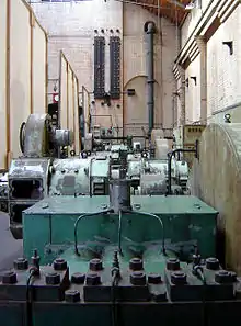 El almacenamiento de agua a presión a corto plazo era proporcionado por unos acumuladores hidráulicos, unos enormes pistones verticales cargados con grandes pesos.